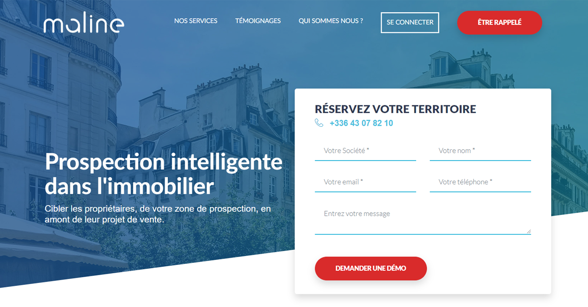Descrição da ferramenta: Maline Immobilier utiliza Big Data para identificar potenciais vendedores de imóveis com antecedência, analisando eventos de vida e oferecendo leads preditivos exclusivos para agentes imobiliários, facilitando estratégias de abordagem multicanal.