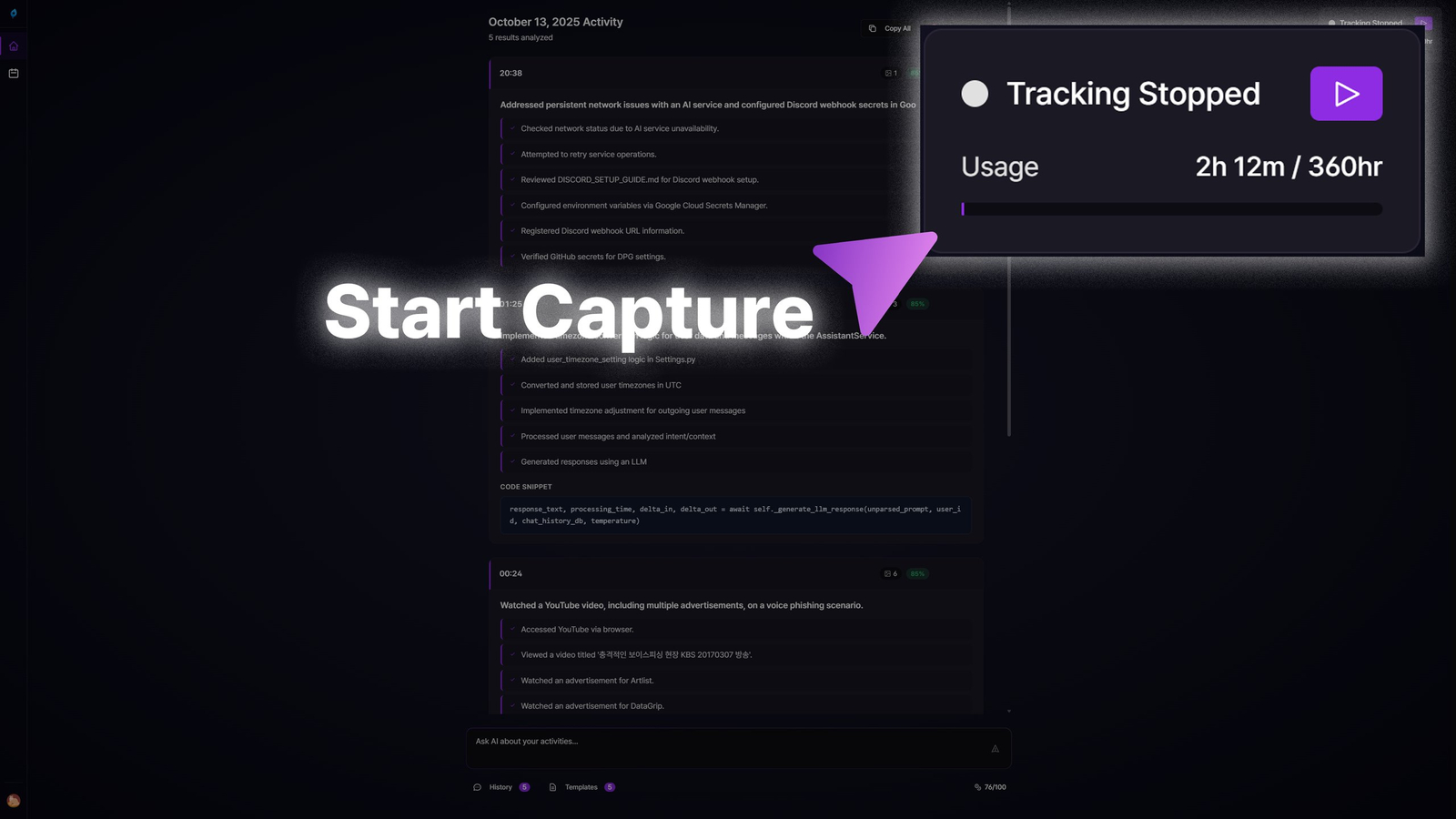 🤖 Automação: Monitoramento contínuo do trabalho de codificação sem intervenção manual constante.
