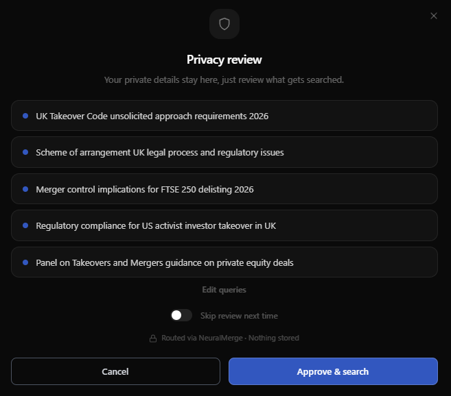 Descrição da ferramenta: NeuralShield é um motor de pesquisa de IA privada que opera localmente, processando consultas, verificando fontes e fornecendo respostas precisas com citações, sem necessidade de conexão com a nuvem ou armazenamento externo.