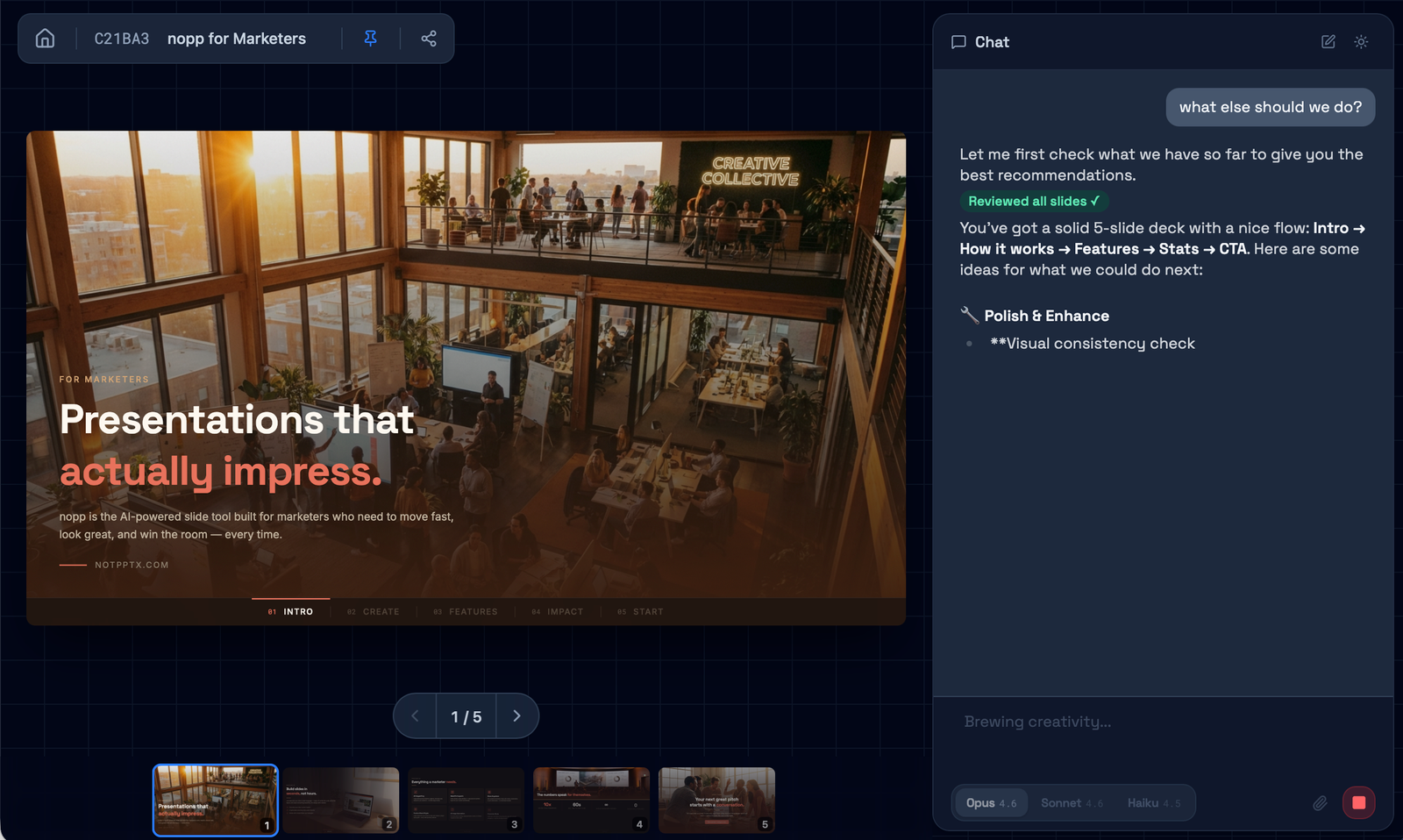 ⚙️ Integração com CLI: Conecta-se ao Claude CLI para automatizar a criação de slides.