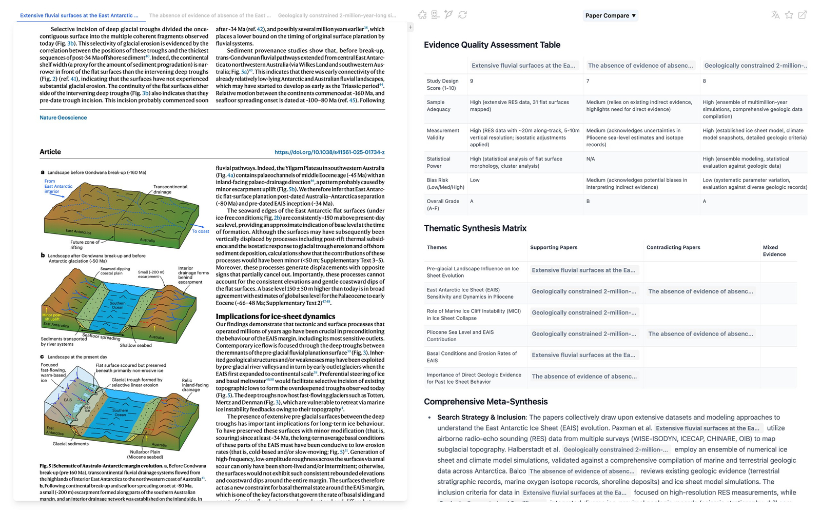 Descrição da ferramenta: OpenRead Paper Compare é uma ferramenta que analisa e compara automaticamente múltiplos artigos acadêmicos, gerando tabelas estruturadas para facilitar a revisão de literatura em questão de segundos.