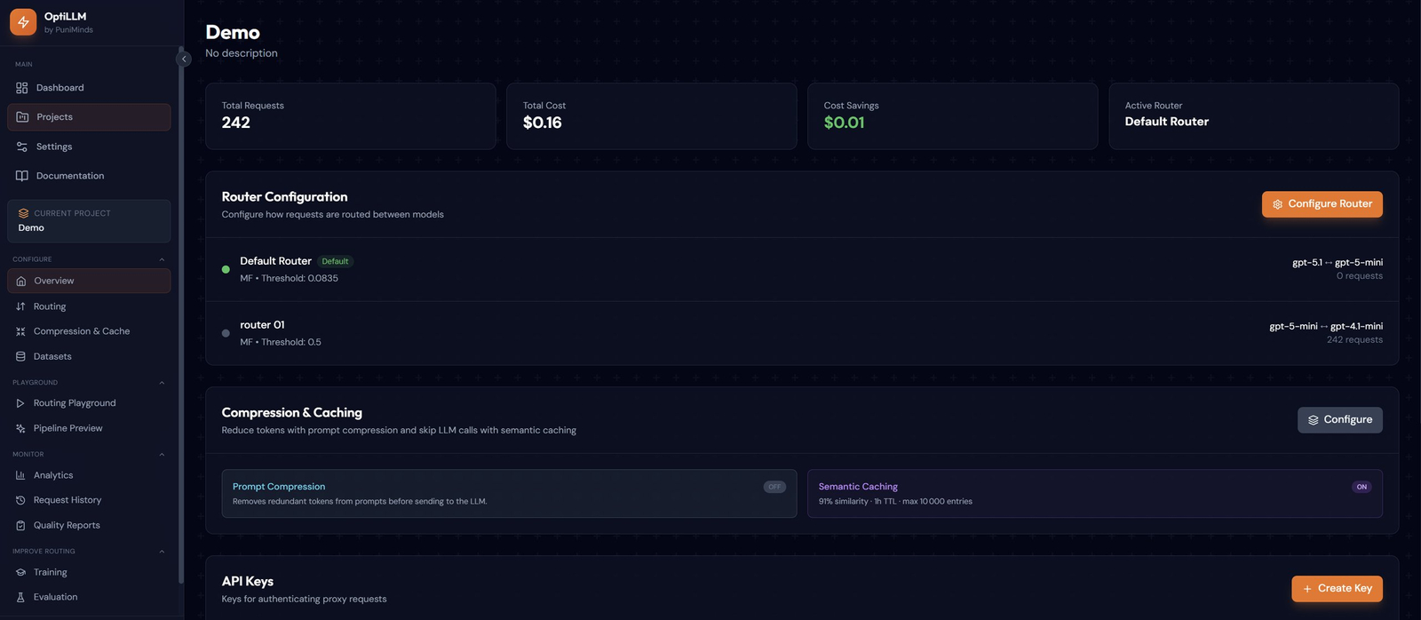 Descrição da ferramenta: OptiLLM é uma plataforma que reduz custos de APIs de modelos de linguagem, otimizando o uso por meio de roteamento inteligente, compressão de tokens e cache de consultas sem necessidade de alterações no código.