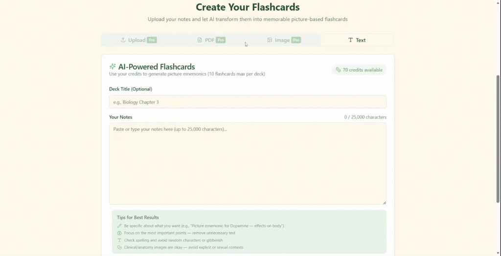 🧠 Personalização: Adapta os mnemônicos às notas e preferências do usuário, promovendo maior eficiência na memorização.