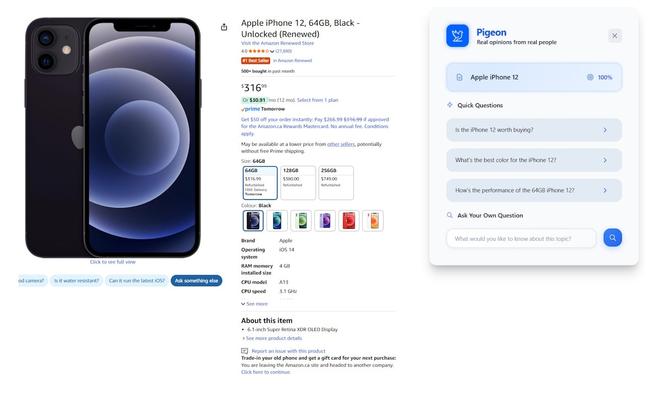 Descrição da ferramenta: Pigeon é uma extensão do Chrome que analisa páginas web, gera perguntas contextuais, exibe discussões relacionadas no Reddit, classifica comentários úteis e fornece resumos com inteligência artificial para facilitar pesquisas e avaliações rápidas.