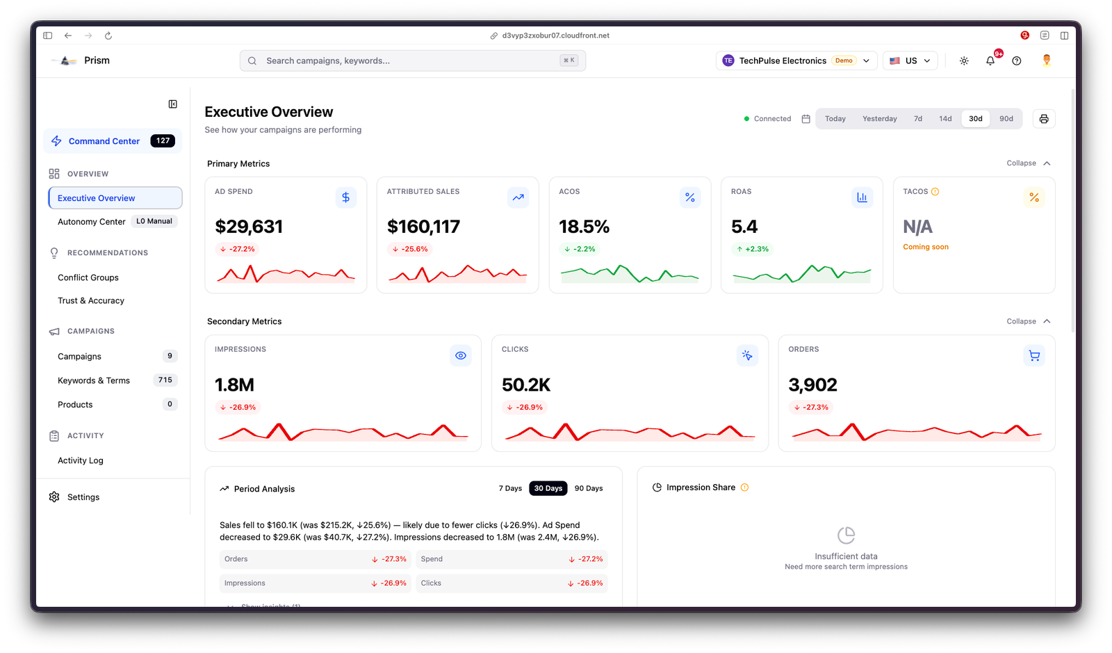 Descrição da ferramenta: Prism by Calibrated Intelligence é uma ferramenta de IA transparente para Amazon PPC, que atua como operador e estrategista, identificando gastos desperdiçados, oportunidades de crescimento e sugerindo correções explicáveis com validação estatística.