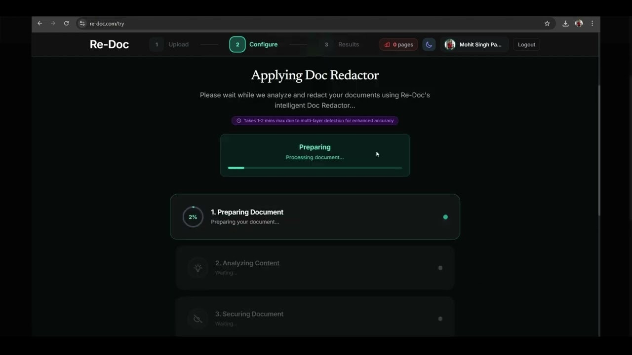Descrição da ferramenta: Re-Doc é uma ferramenta que permite a edição, anonimização e substituição de dados sensíveis em documentos, garantindo integridade do layout e confidencialidade, com opções de marcação permanente ou substituição por dados sintéticos.