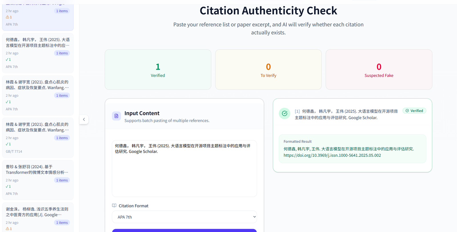 🔍 Verificação de Citações: Analisa a autenticidade das citações acadêmicas para garantir sua precisão.
