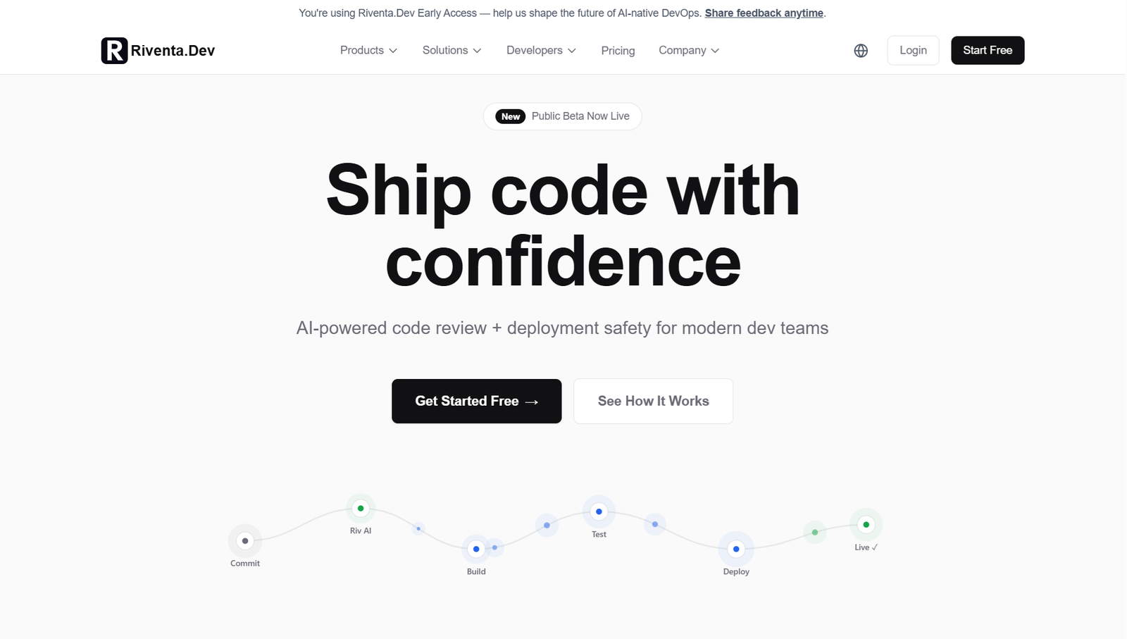 Descrição da ferramenta: Riventa.Dev é uma ferramenta de DevOps com inteligência artificial que monitora, analisa e atua automaticamente em pipelines de integração contínua, prevendo falhas, avaliando métricas DORA e realizando varreduras de segurança.