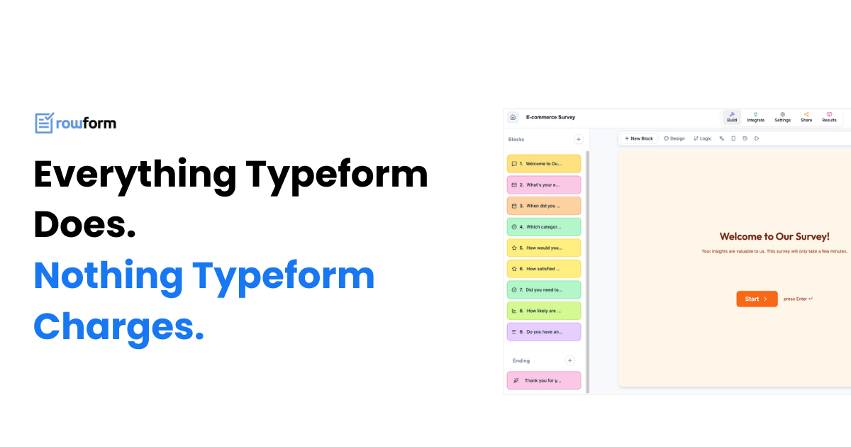 Descrição da ferramenta: Rowform é uma plataforma gratuita que oferece criação de formulários interativos, com lógica condicional, templates prontos e opções de personalização, proporcionando uma alternativa acessível ao Typeform para geração de leads e avaliações.