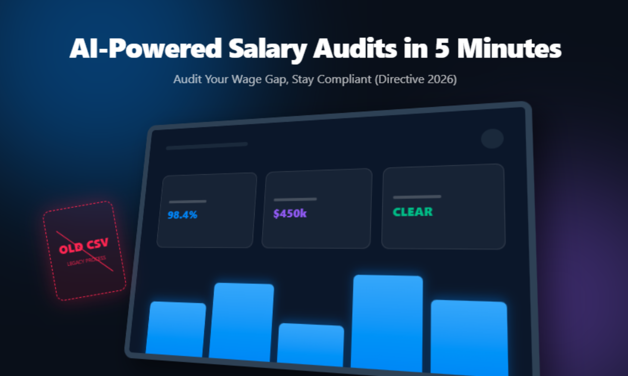 Salarity é uma plataforma que automatiza auditorias de desigualdade salarial usando inteligência artificial, proporcionando análises rápidas, visuais e acionáveis para garantir conformidade com a Diretiva de Transparência da UE de 2026.