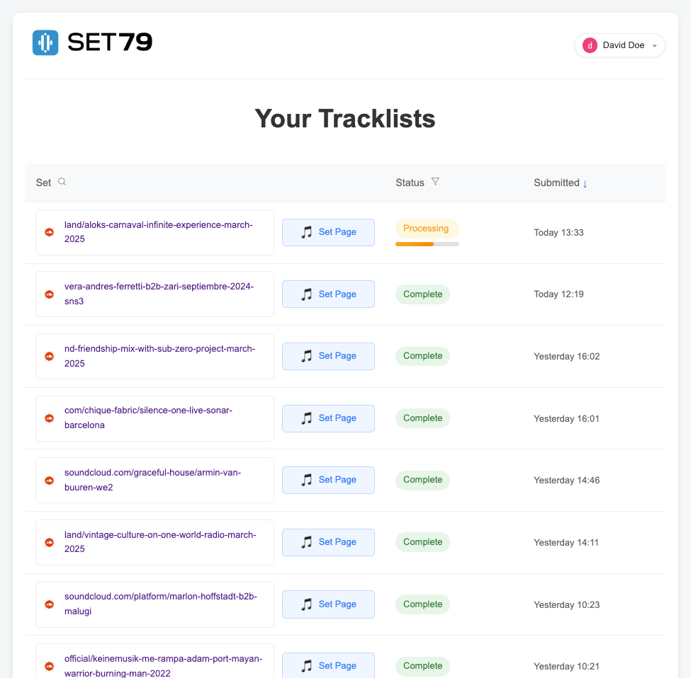 Descrição da ferramenta: Set79 é uma ferramenta automatizada que analisa sets de DJ do SoundCloud, fornecendo uma lista detalhada de faixas, timestamps e links, facilitando a navegação e o entendimento do conteúdo musical.