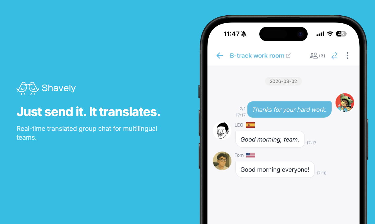 Descrição da ferramenta: Shavely é um aplicativo de mensagens em grupo para equipes multilíngues, que traduz automaticamente as mensagens em 29 idiomas, permitindo comunicação fluida e instantânea sem necessidade de intervenção manual na tradução.