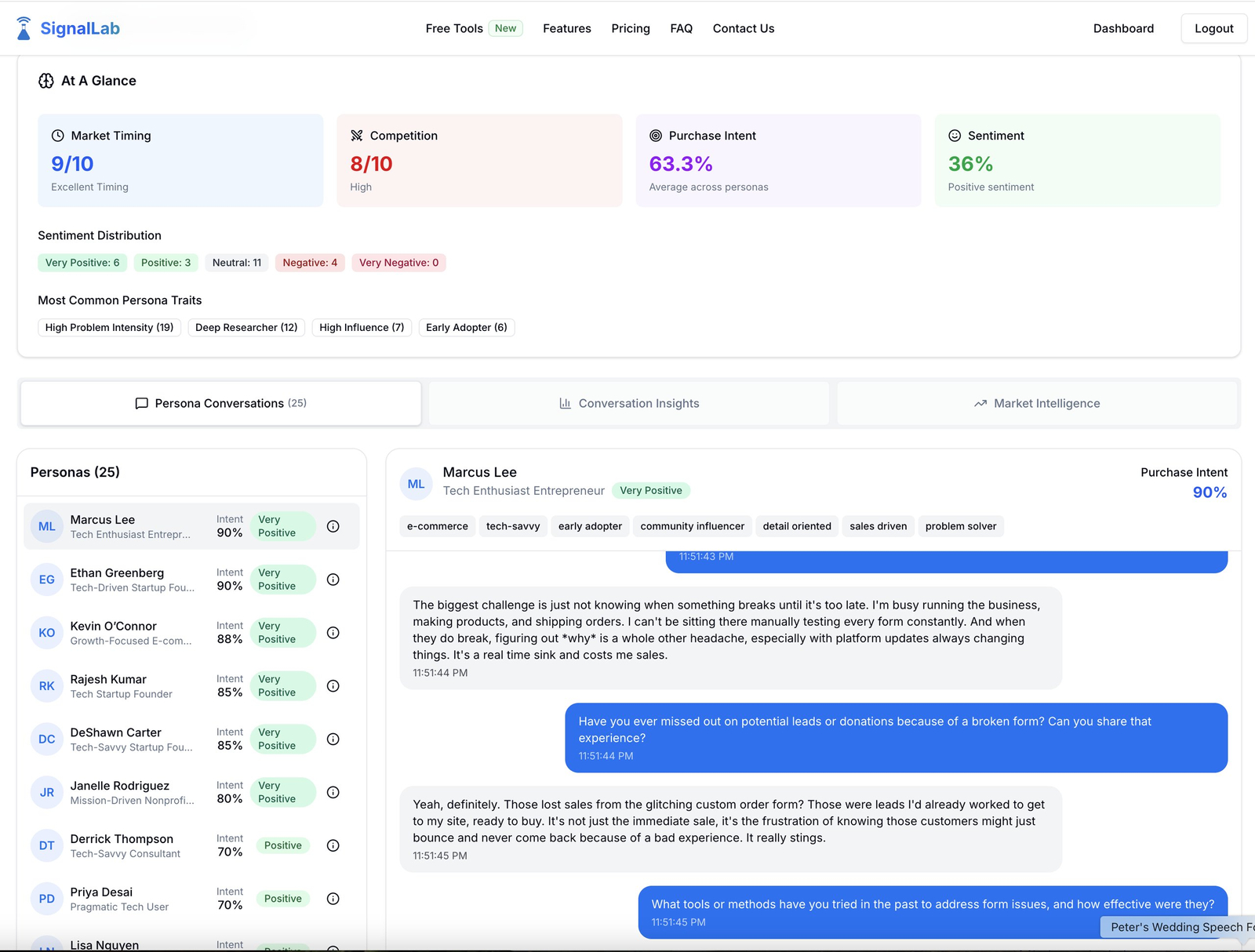 Descrição da ferramenta: SignalLab permite validar ideias de negócios ao criar personas de IA baseadas no mercado-alvo, proporcionando insights autênticos sobre comportamentos, dúvidas e motivações dos clientes antes do desenvolvimento.