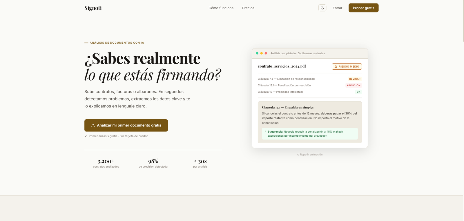 O Signoti é uma ferramenta de inteligência artificial que analisa contratos, faturas e albaranes, ajudando a identificar possíveis irregularidades e evitar surpresas financeiras ou legais.