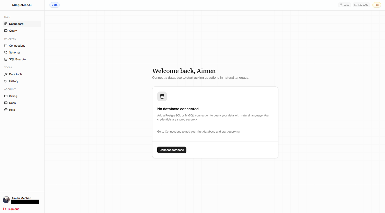 Descrição da ferramenta: SimpleLine.ai permite fazer perguntas em inglês simples e obter respostas instantâneas em SQL de bancos de dados PostgreSQL ou MySQL, com geração automática de consultas, gráficos e explorador de esquema.