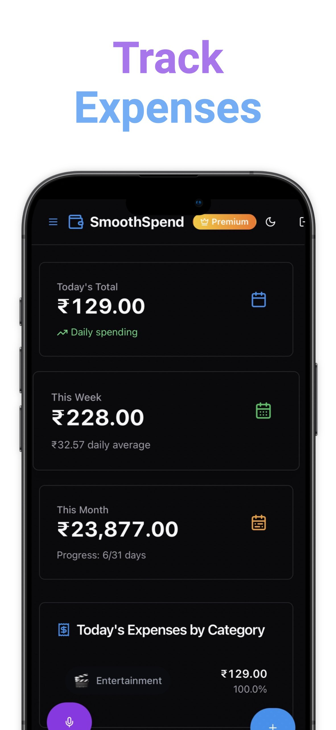 Descrição da ferramenta: SmoothSpend é um aplicativo de rastreamento de despesas e planejamento financeiro com inteligência artificial, que facilita o controle diário, oferece previsões de gastos e recomendações de orçamento inteligentes por meio de dashboards interativos.