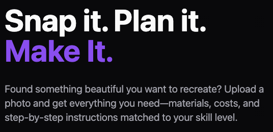 🎨 Criar tutoriais personalizados: Usuários enviam fotos de projetos concluídos para obter instruções detalhadas e custos estimados.