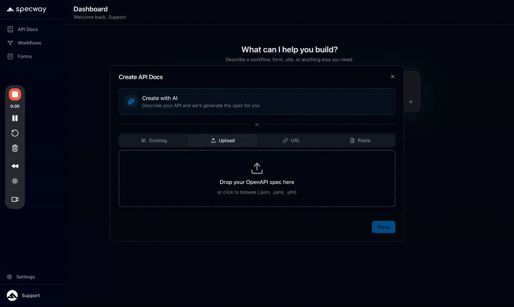 Descrição da ferramenta: Specway é uma plataforma que gera documentação interativa a partir de especificações OpenAPI, mantendo-a sincronizada automaticamente e oferecendo recursos como chatbot AI, alertas de mudanças e integração com CI/CD.