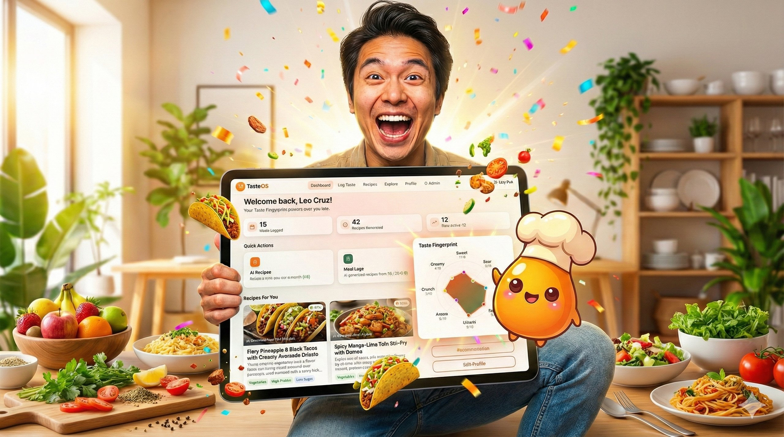 Descrição da ferramenta: TasteOS é uma plataforma que aprende com suas refeições reais, criando receitas personalizadas e saudáveis baseadas em seu perfil biológico e preferências, utilizando fotos de ingredientes ou listagens.