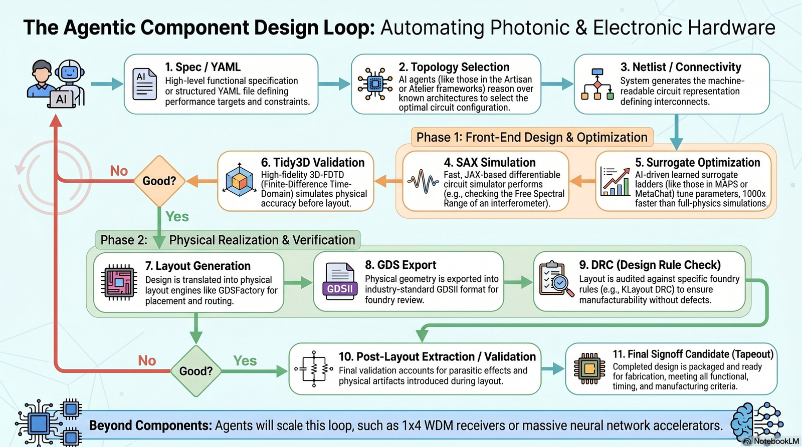Descrição da ferramenta: Plataforma de design de chips fotônicos agentic, que integra modelos avançados, aprendizado contínuo e feedback para otimizar decisões e aprimorar resultados em processos de inovação tecnológica.