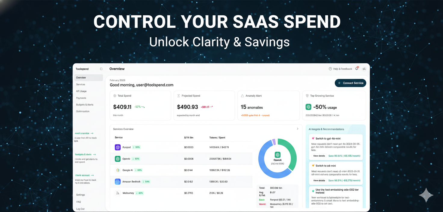 Descrição da ferramenta: Toolspend é uma plataforma que monitora e gerencia gastos, uso e custos de SaaS e IA, identificando assinaturas subutilizadas, duplicadas e alertando antes de renovações, automatizando processos de procurement para otimizar recursos.