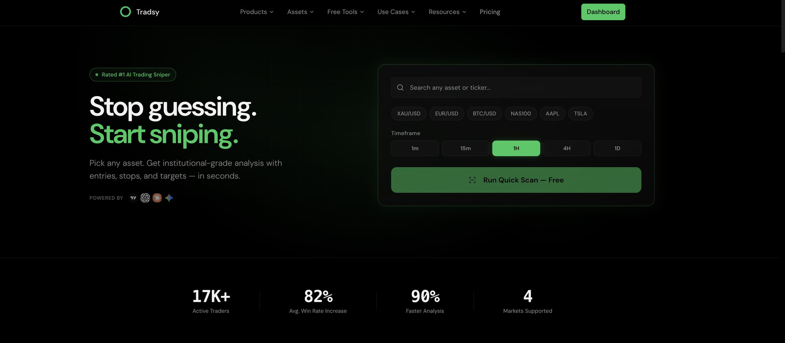 Descrição da ferramenta: A Tradsy AI oferece análise instantânea de símbolos financeiros usando inteligência artificial, incluindo entradas, stops e metas, facilitando decisões de trading precisas para usuários em uma plataforma intuitiva.