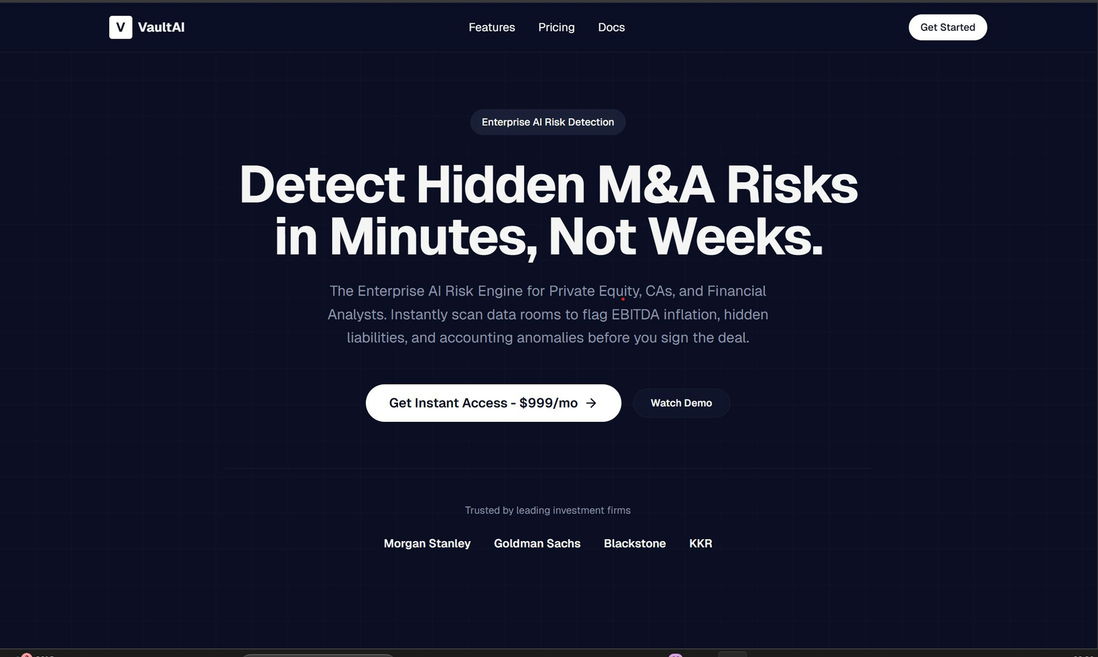 Descrição da ferramenta: VaultAI é uma plataforma de inteligência artificial que identifica riscos financeiros ocultos em processos de fusões e aquisições, proporcionando análises rápidas e precisas para investidores, analistas e profissionais do setor financeiro.