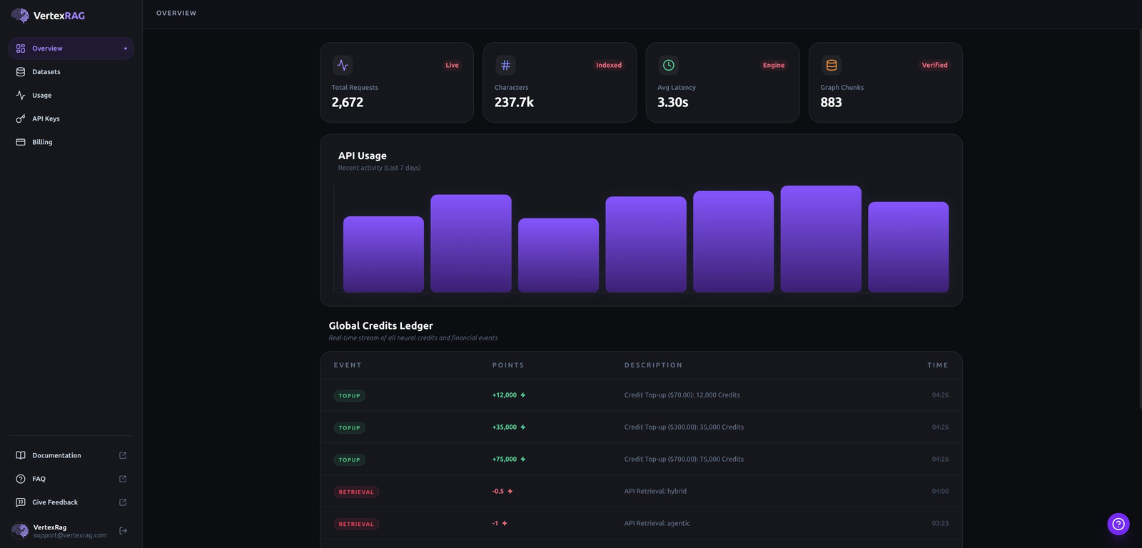 O VertexRAG oferece uma solução de Graph-RAG de nível empresarial como serviço, permitindo integração eficiente de dados e consultas avançadas por meio de uma plataforma escalável e segura.