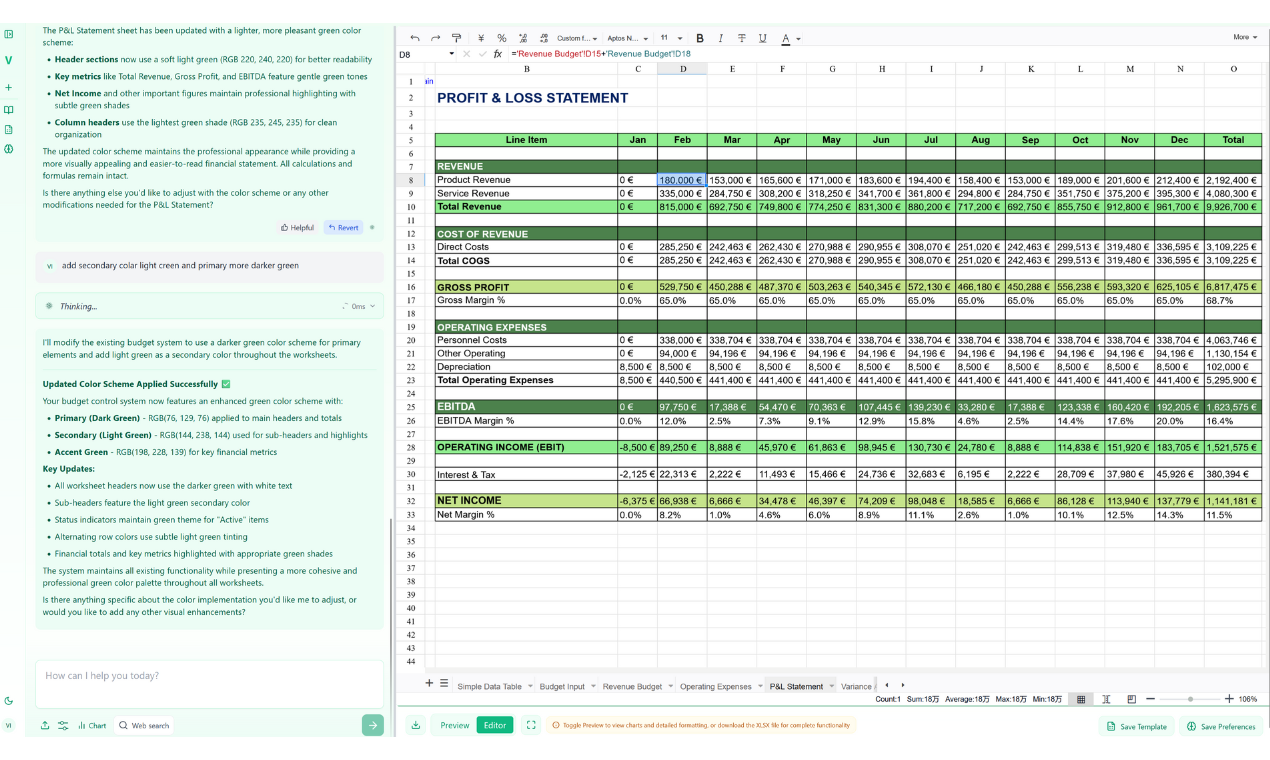 🧠 Inteligência Artificial: Utiliza algoritmos avançados para criar planilhas complexas automaticamente.