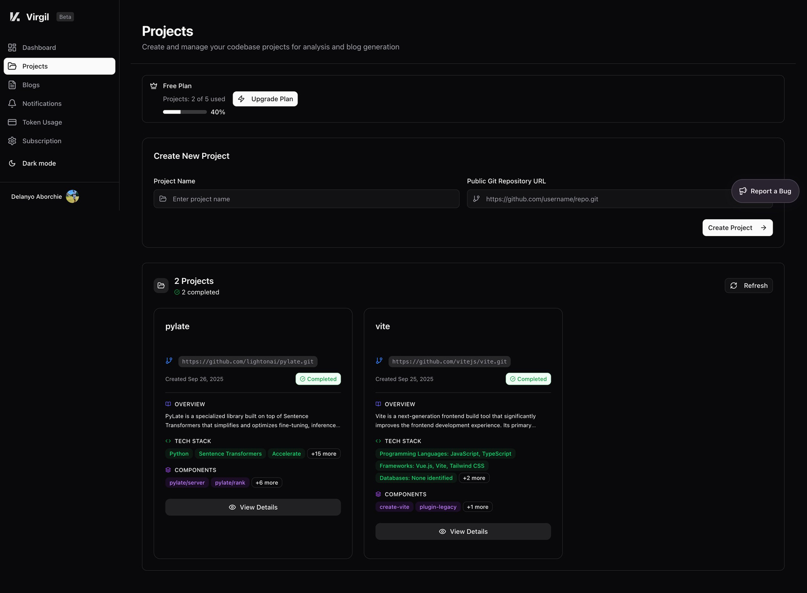 Descrição da ferramenta: Virgil é uma plataforma de gerenciamento de projetos que utiliza inteligência artificial para analisar, baixar e administrar repositórios Git, oferecendo insights avançados para otimizar o desenvolvimento de software.
