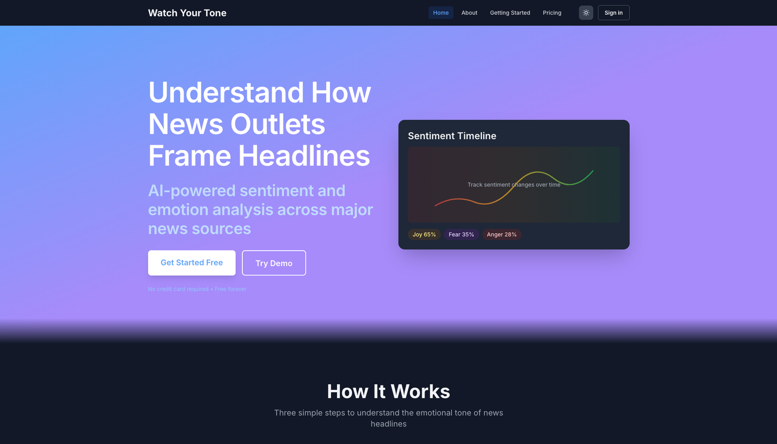 WatchYourTone é uma ferramenta que analisa o tom emocional e a estrutura retórica de manchetes de notícias modernas, permitindo comparar veículos, identificar padrões de viés e compreender como a linguagem influencia a percepção do leitor.