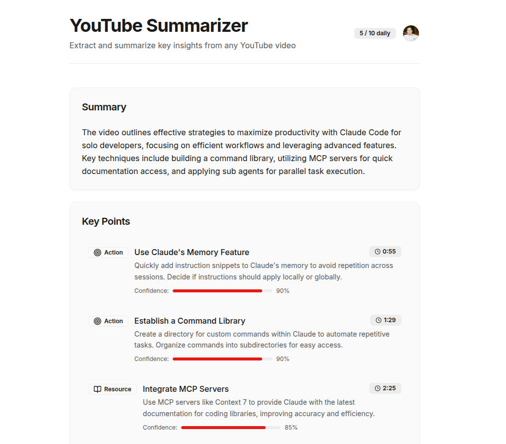 ⏳ Simplificação de conteúdos longos: Obtenha uma visão geral sem precisar assistir horas de vídeo.