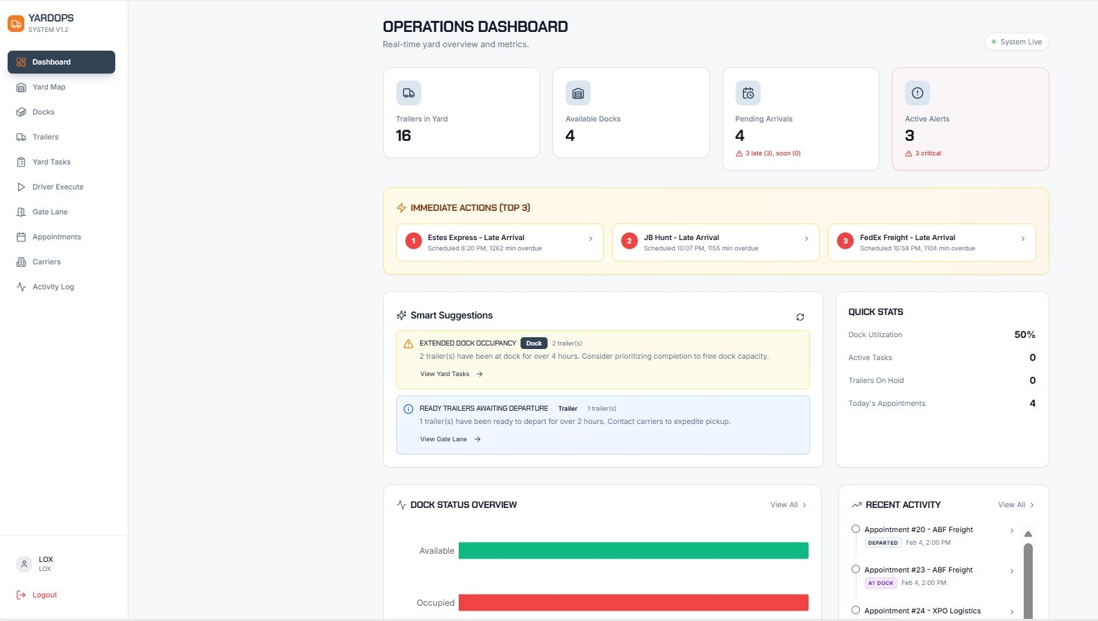 Descrição da ferramenta: YardOps é um sistema de pátio que utiliza inteligência artificial para aprimorar a visibilidade, gerenciamento e orquestração de operações logísticas, facilitando o controle de check-ins, rastreamento de trailers e alocação de espaços.