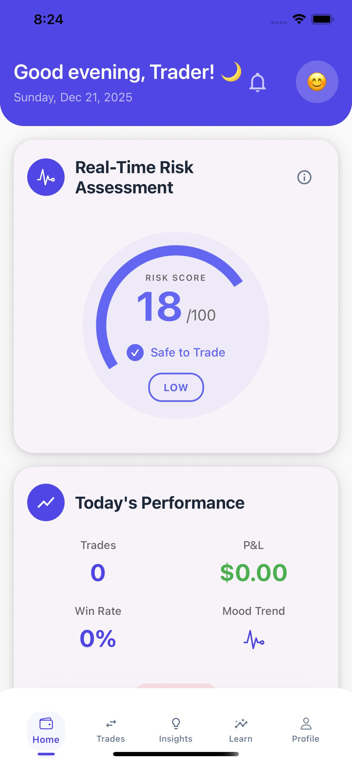 🔔 Aviso em tempo real: Notifica o usuário sobre sinais de tilt ou comportamento emocional perigoso durante a negociação.