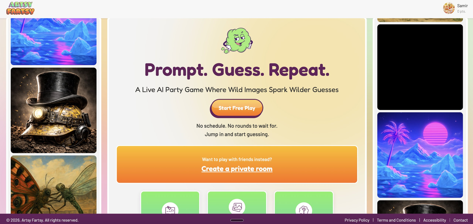 Descrição da ferramenta: Artsy Fartsy é um jogo multiplayer ao vivo que utiliza inteligência artificial para criar desafios baseados em prompts, promovendo diversão e criatividade sem necessidade de preparação ou talento prévio.