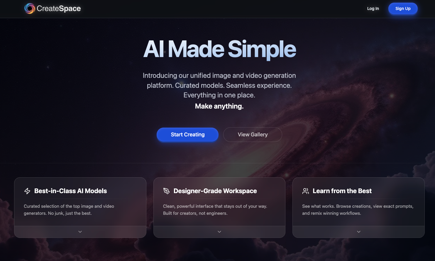 Descrição da ferramenta: CreateSpace é uma plataforma que utiliza tecnologia avançada de IA para transformar fotos em vídeos impressionantes, permitindo upload, aprimoramento e download rápidos, além de oferecer efeitos de animação com modelos de destaque.