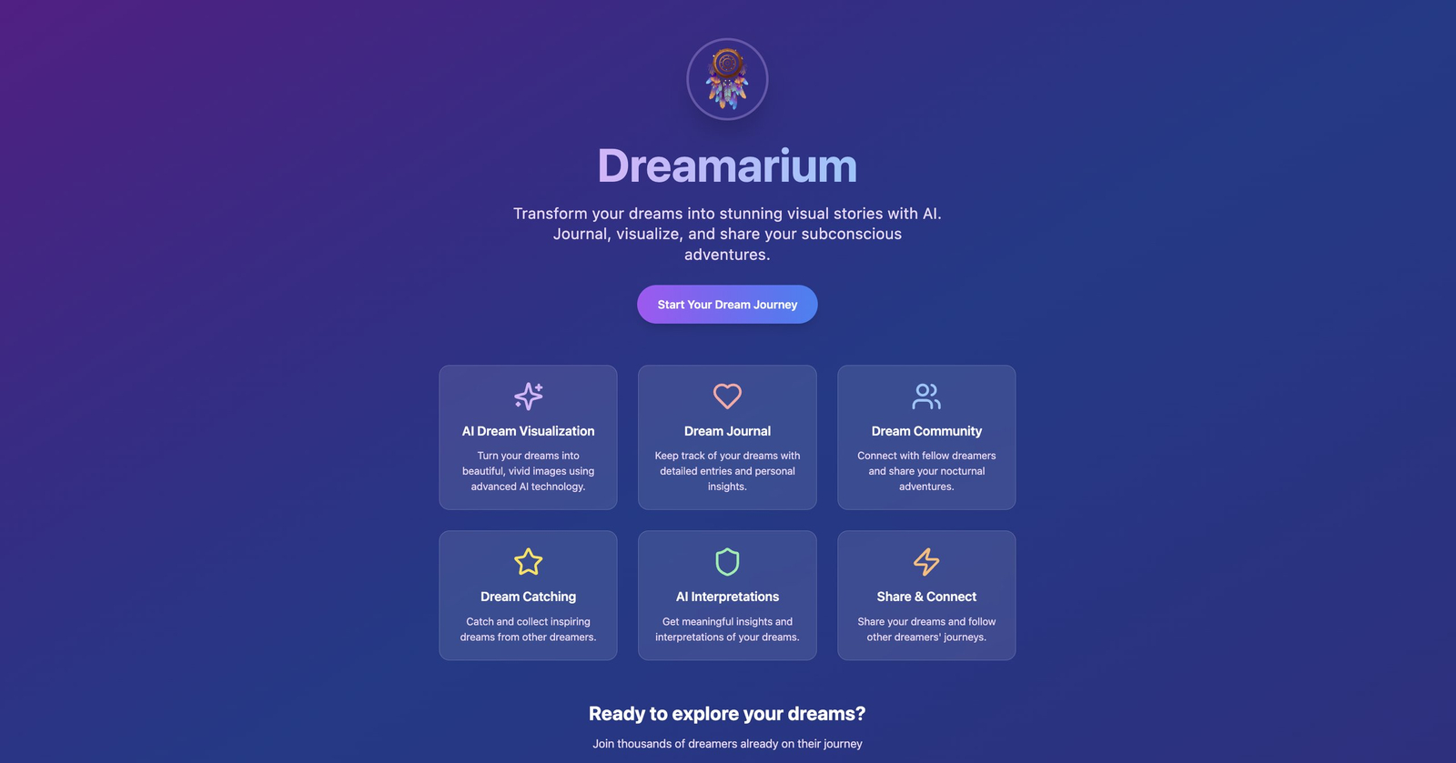 Descrição da ferramenta: Dreamarium converte sonhos capturados por voz em arte gerada por IA, oferecendo insights psicológicos aprofundados através de múltiplos provedores de inteligência artificial, promovendo exploração do subconsciente e reconhecimento de padrões visuais.