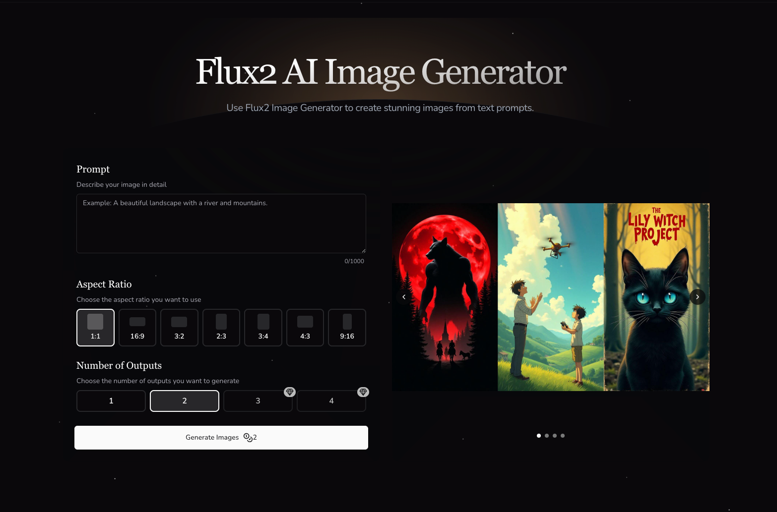 Descrição da ferramenta: FLUX2 AI é um gerador de imagens por inteligência artificial desenvolvido pela Black Forest Labs, utilizando tecnologia avançada para criar imagens de alta qualidade a partir de comandos textuais.