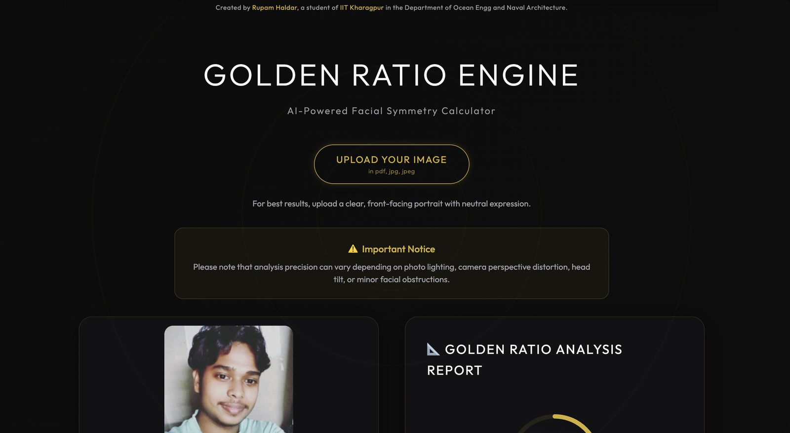 Descrição da ferramenta: A Golden Ratio Engine é uma ferramenta que analisa fotos faciais para calcular a proporção áurea usando inteligência artificial, fornecendo resultados precisos e privados baseados na medida de phi (1.618).