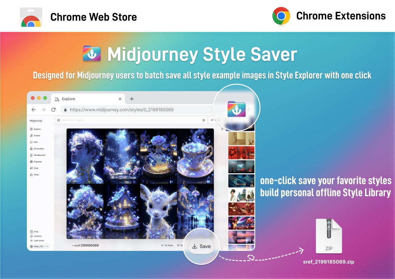 💾 S Save Styles: Salvamento automático das imagens de estilos enquanto navega pelo Style Explorer do Midjourney.