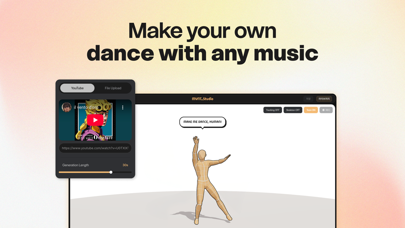 Descrição da ferramenta: mvntSTUDIO é uma plataforma de geração de animações de dança com inteligência artificial, permitindo transformar músicas em coreografias prontas para produção, abrangendo estilos como TikTok e K-pop, facilitando a visualização criativa de movimentos.