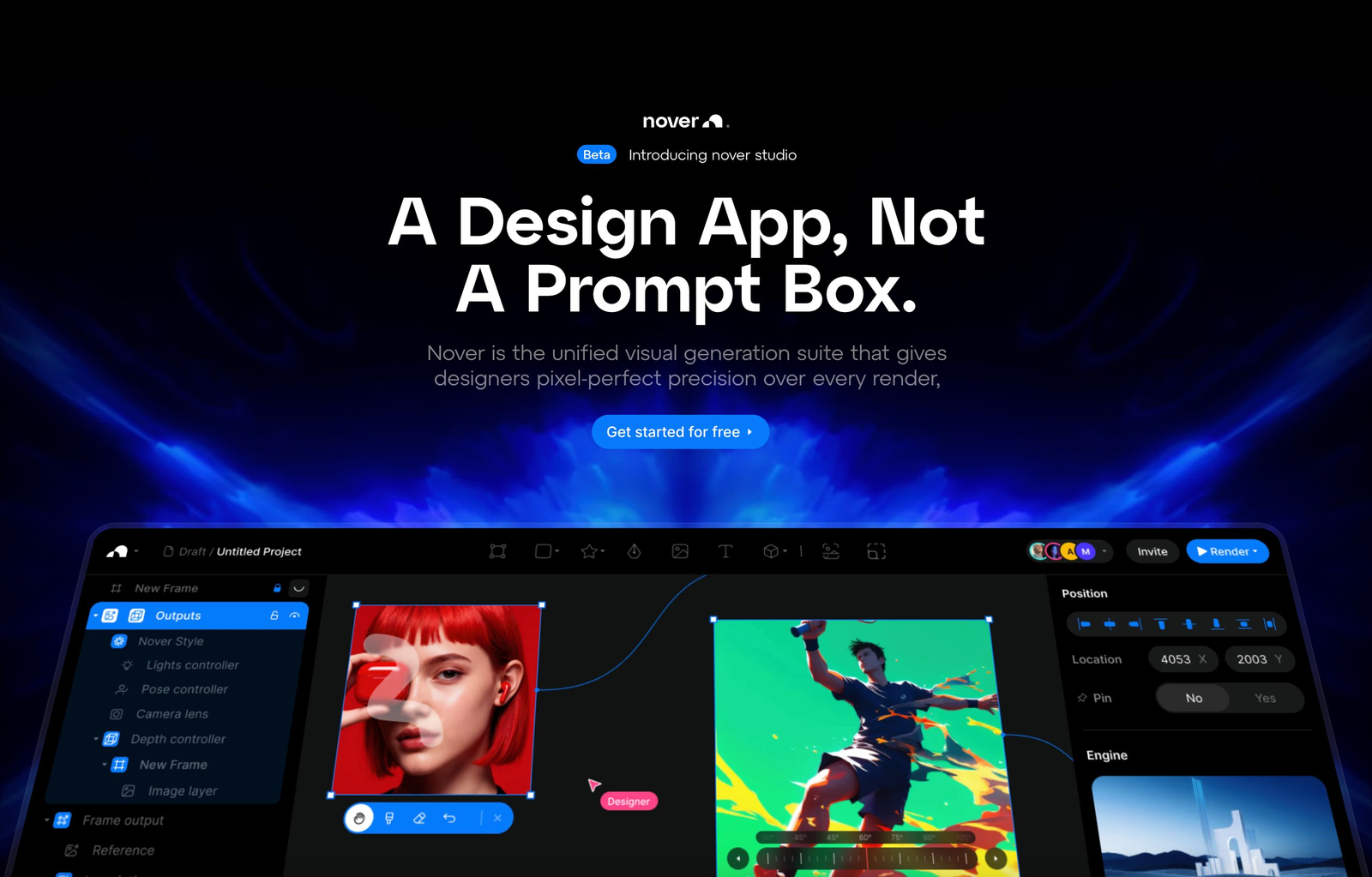 Descrição da ferramenta: Nover é uma plataforma que permite controle preciso na criação de mídia visual com IA, combinando fluxo de trabalho de ferramentas de design com geração automatizada, possibilitando ajustes detalhados em composição, iluminação e movimento.