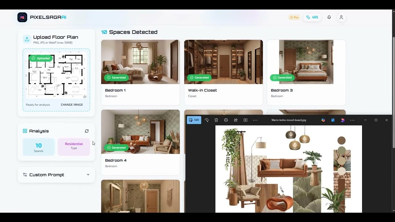 Descrição da ferramenta: Pixelsaga AI é uma plataforma que utiliza inteligência artificial para transformar plantas de layout em renders internos realistas e de alta qualidade, facilitando a visualização de projetos de design de interiores.