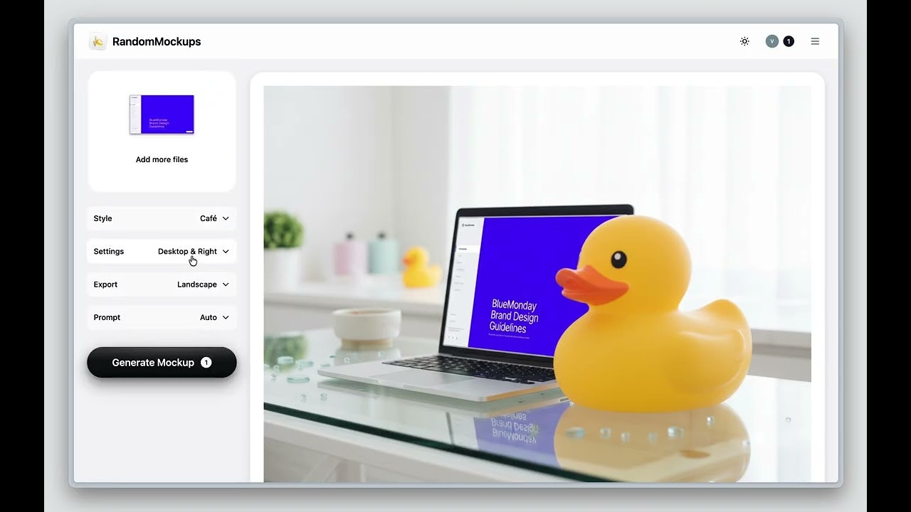 Descrição da ferramenta: RandomMockups – AI Mockup Generator é uma ferramenta que gera mockups profissionais de dispositivos a partir de capturas de tela, utilizando inteligência artificial para criar imagens únicas e personalizadas para aplicativos e sites.