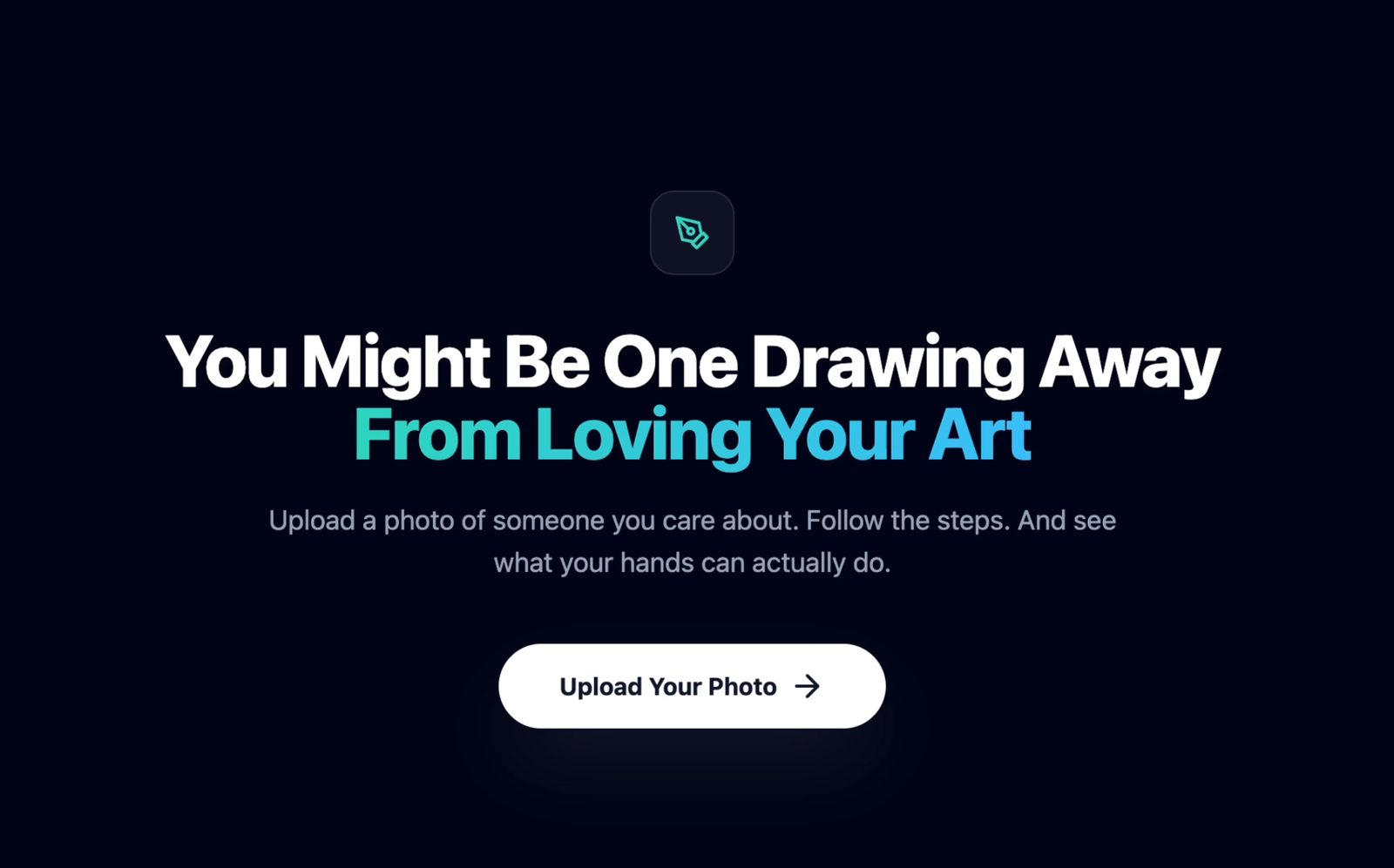 Descrição da ferramenta: Sketch Tutor é uma plataforma que ensina a desenhar transformando fotos em esboços de lápis, divididos em etapas, permitindo o aprendizado prático e personalizado com base na imagem escolhida pelo usuário.