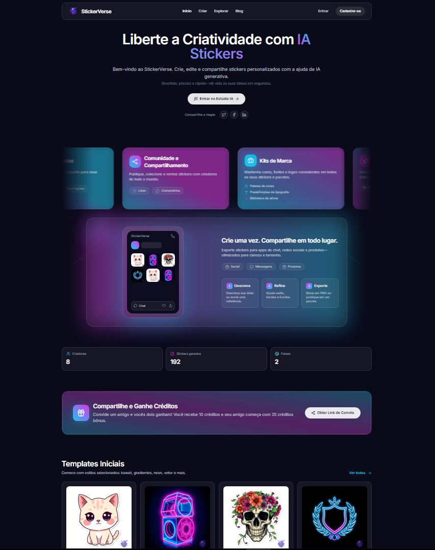 Descrição da ferramenta: O StickerVerse é um estúdio de stickers com inteligência artificial que permite criar, editar e compartilhar stickers personalizados de forma rápida, precisa e divertida, facilitando a expressão criativa dos usuários em segundos.