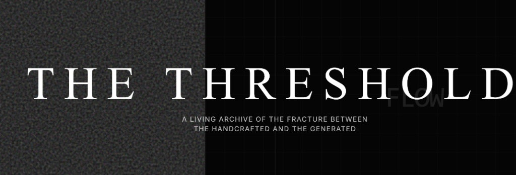 Descrição da ferramenta: The Threshold é um arquivo digital que documenta a transição entre conteúdo artesanal e gerado por inteligência artificial, explorando as fronteiras entre criatividade humana e tecnologia.