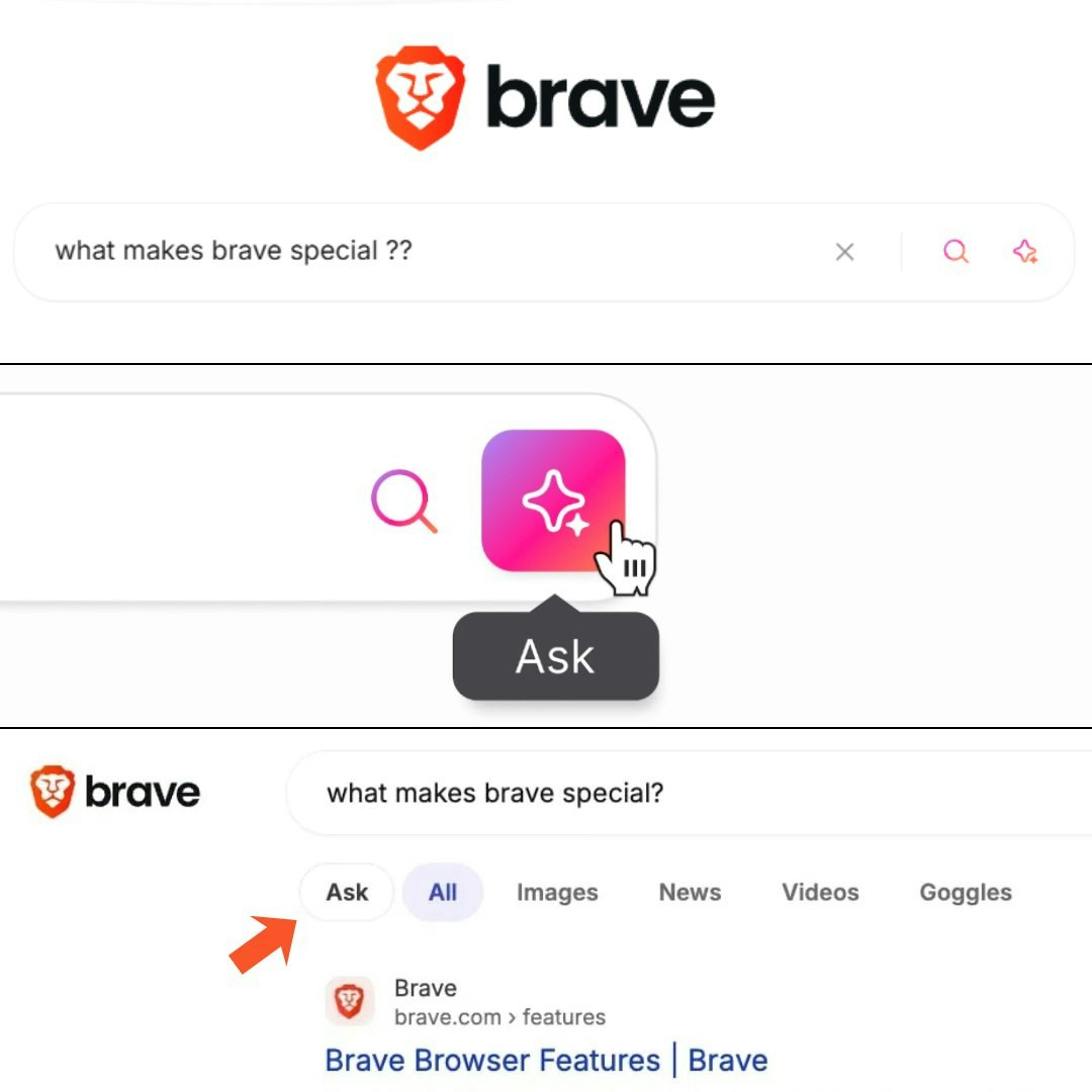 Descrição da ferramenta: Ask Brave é uma interface integrada que combina busca na web e chat com inteligência artificial, oferecendo respostas completas e seguras, permitindo interações contínuas em uma única conversa, acessível de qualquer navegador.