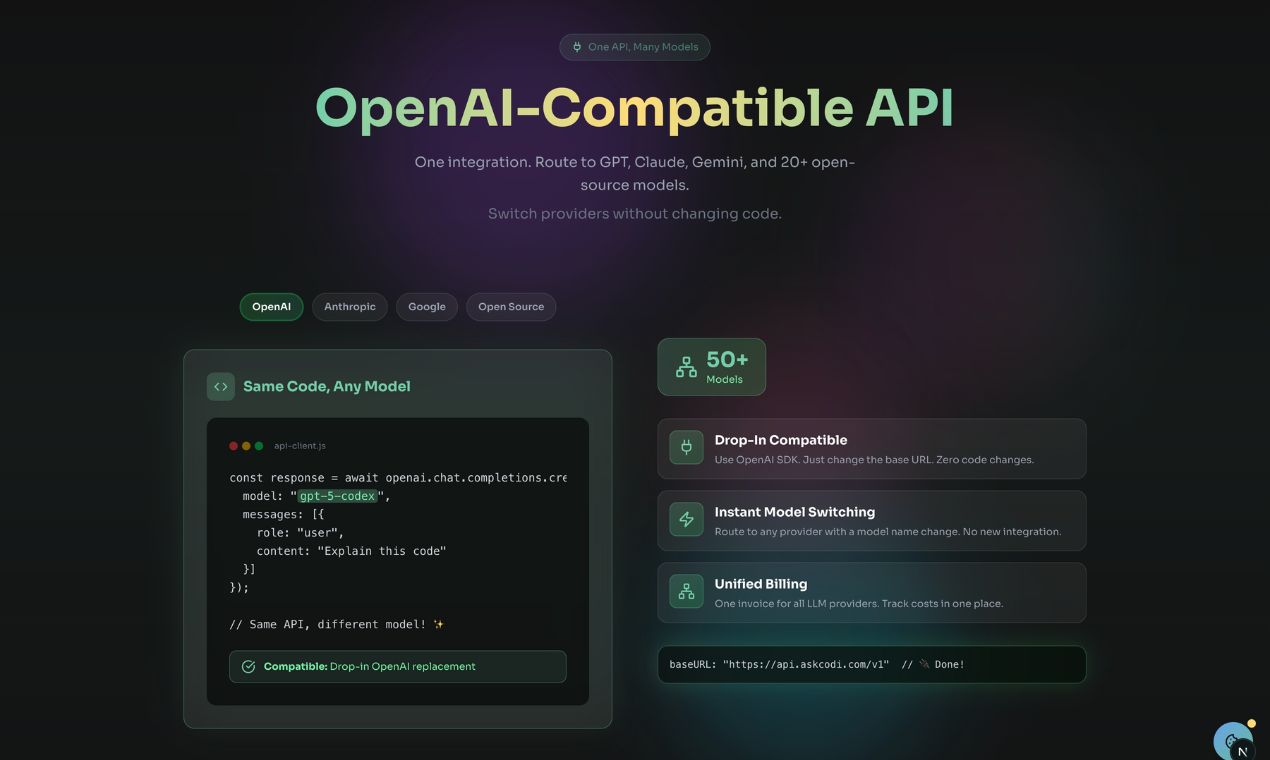 🔌 API compatível com OpenAI: Interface única para acesso a diversos modelos de linguagem.