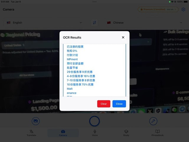 🖼️ Imagem: Reconhece e traduz textos presentes em imagens capturadas pelo usuário.